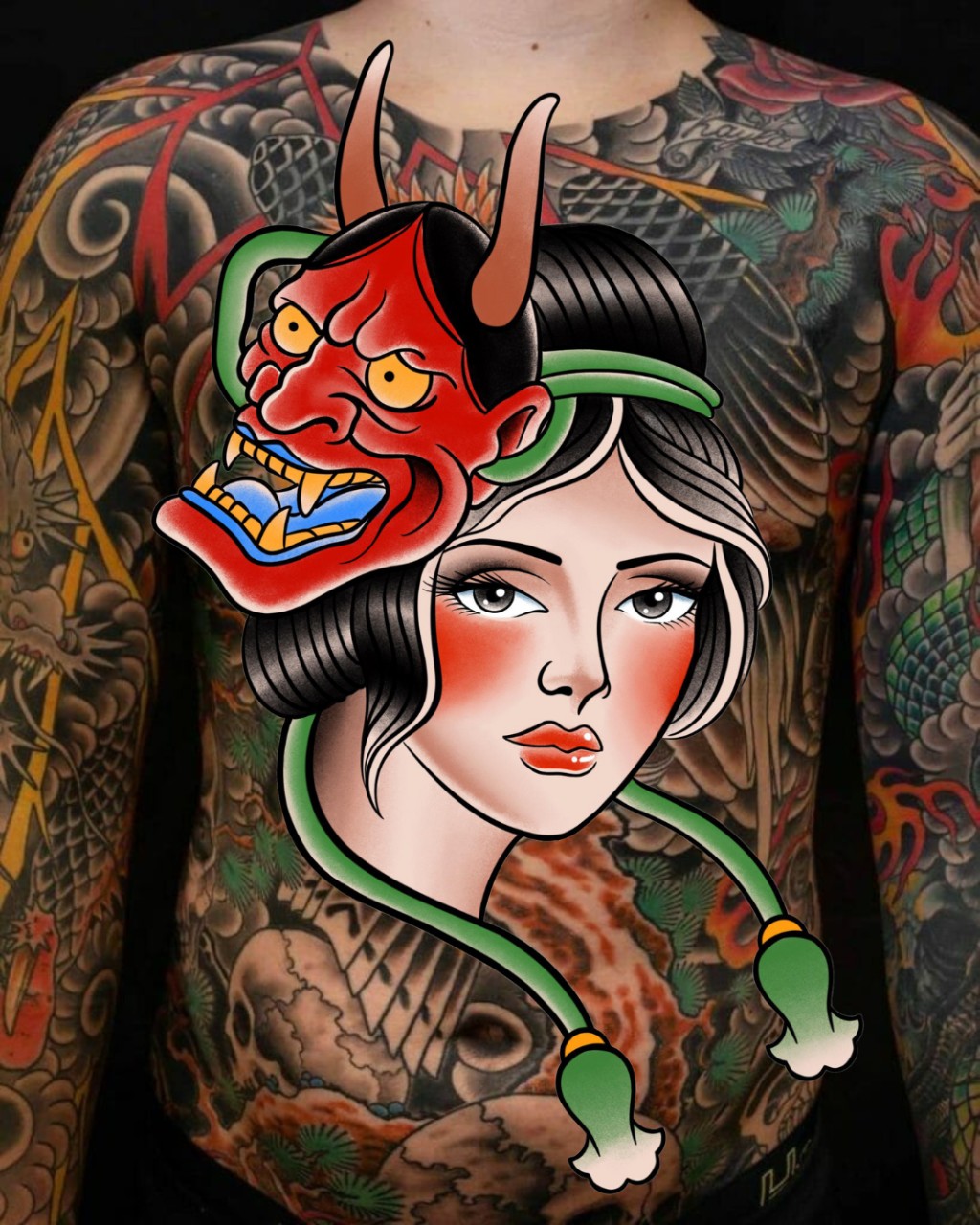 A Origem da Fúria: A Hannya não é um demônio comum; ela é a representação visual de uma mulher que atingiu o ápice da sua dor, ciúme e obsessão, transformando-se em algo monstruoso, mas ainda mantendo traços de humanidade. A máscara Hannya possui dois olhares: de cima, parece chorar de tristeza; de frente, exala uma fúria incontrolável. É essa dualidade que nos fascina.