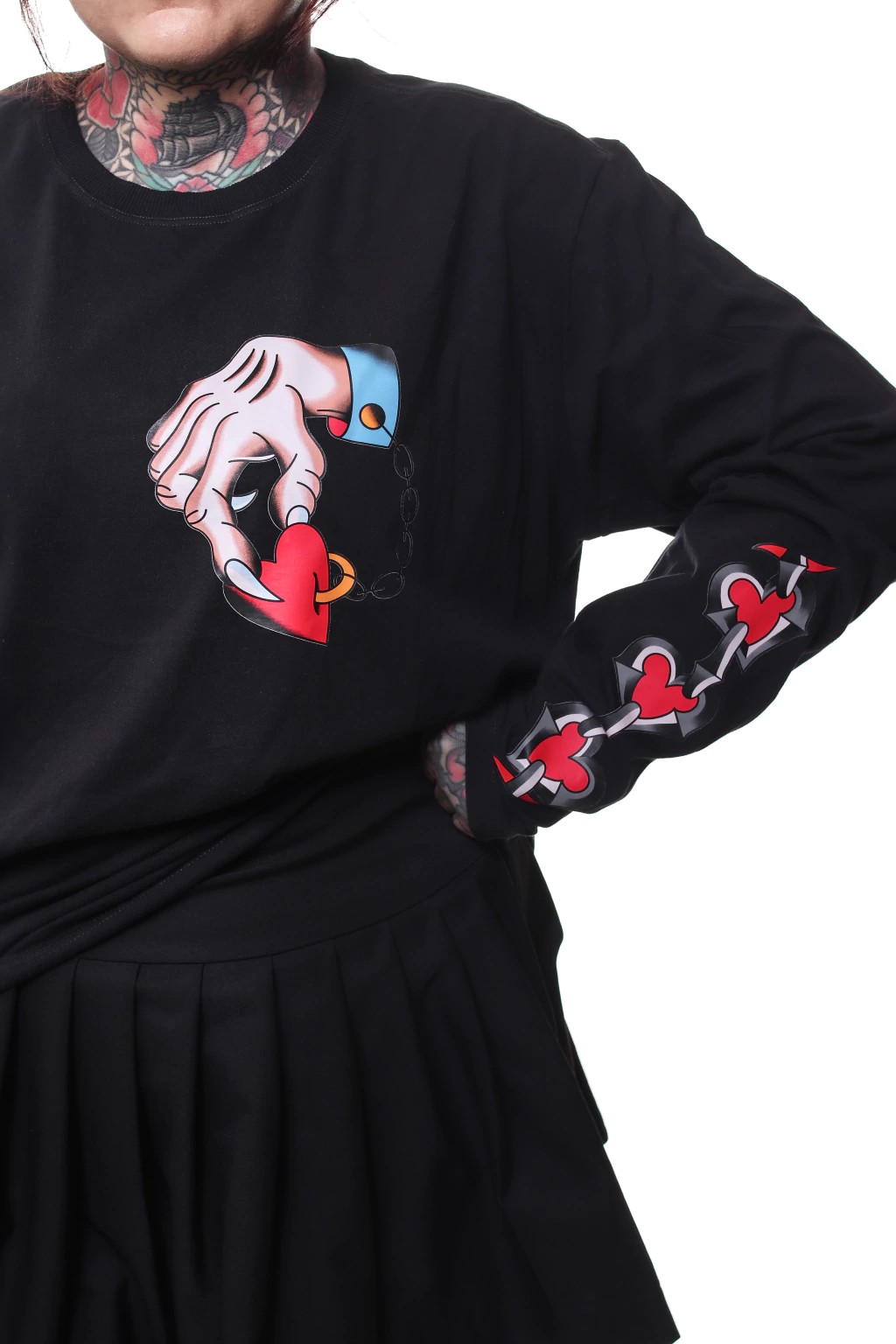 Alguns desenhos atravessam décadas sem perder força. O Prisoner of Love é um deles. Nascido no universo da tatuagem tradicional, ele saiu da pele, ganhou o tecido e se tornou uma estampa icônica da Tradme. Primeiro na manga longa, agora também no cropped, carregando o mesmo peso simbólico e visual que o tornou um clássico.